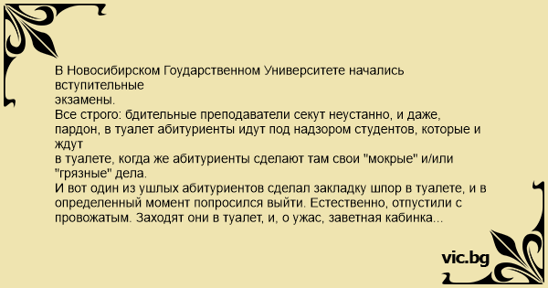 И вот один из ушлых абитуриентов сделал закладку шпор в туалете, и в