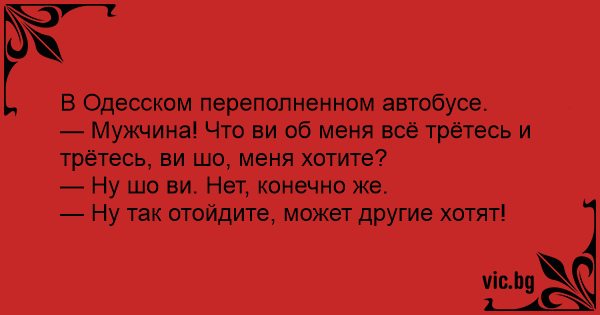— Мужчина! Что ви об меня всё трётесь и трётесь, ви шо, меня хотите?