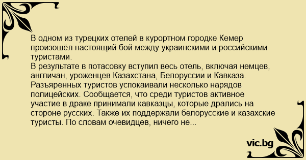 В одном из турецких отелей в курортном городке Кемер произошёл настоящий бой между украинскими и российскими туристами.