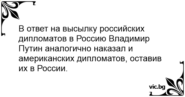 В ответ на высылку российских дипломатов в Россию Владимир Путин аналогично наказал и американских дипломатов, оставив их в России.