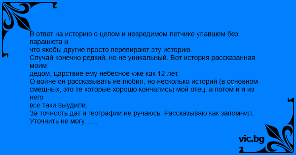 В ответ на историю о целом и невредимом летчике упавшем без парашюта и