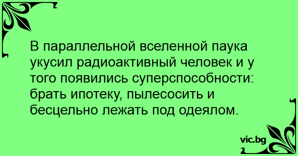 В параллельной вселенной паука укусил радиоактивный человек и у того появились суперспособности: брать ипотеку, пылесосить и бесцельно лежать под одеялом.