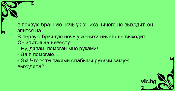 в первую брачную ночь у жениха ничего не выходит. он злится на...