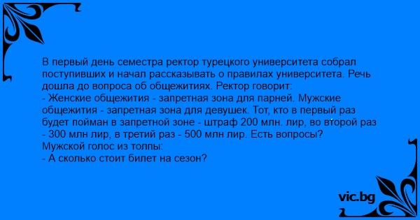 В первый день семестра ректор турецкого университета собрал поступивших и начал рассказывать о правилах университета. Речь дошла до вопроса об общежитиях. Ректор говорит: