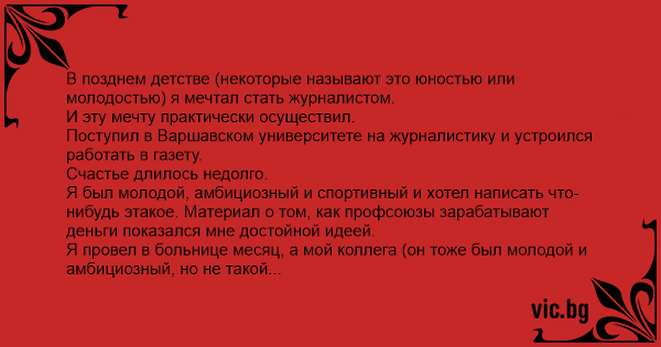 Я был молодой, амбициозный и спортивный и хотел написать что-нибудь этакое. Материал о том, как профсоюзы зарабатывают деньги показался мне достойной идеей.