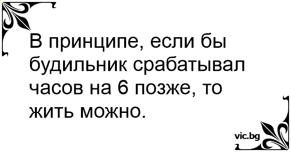 В принципе, если бы будильник срабатывал часов на 6 позже, то жить можно.