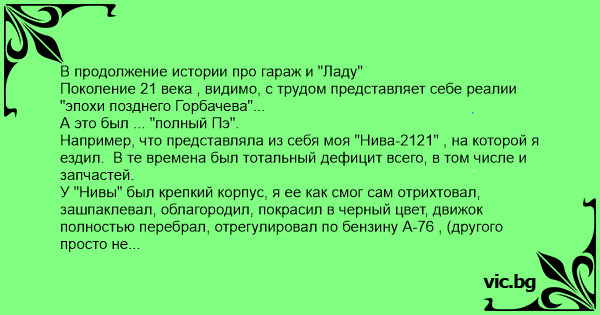 В продолжение истории про гараж и "Ладу" Поколение 21 века , видимо, с трудом представляет себе реалии "эпохи позднего Горбачева"...
