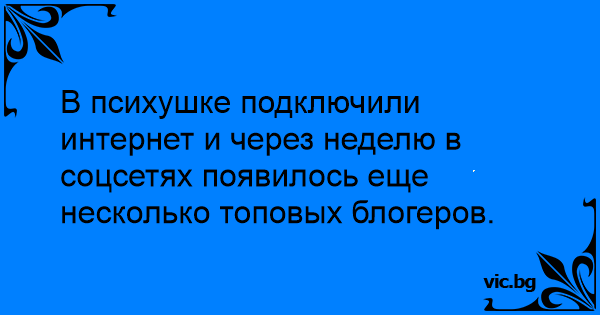 В психушке подключили интернет и через неделю в соцсетях появилось еще несколько топовых блогеров.