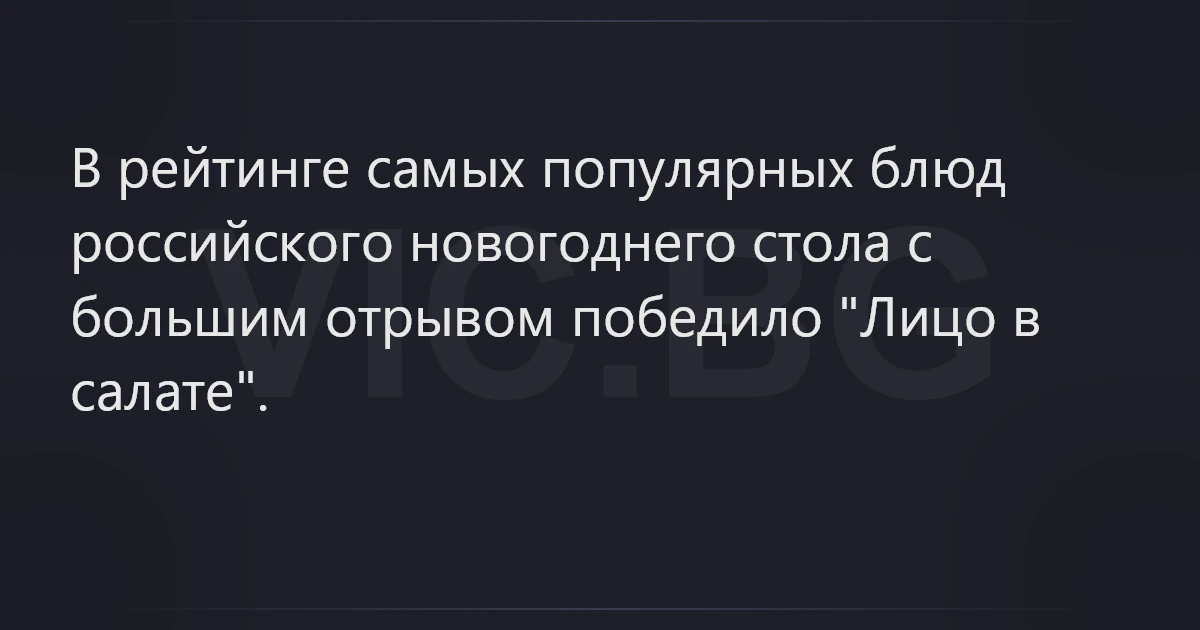 В рейтинге самых популярных блюд российского новогоднего стола с большим отрывом победило "Лицо в салате".