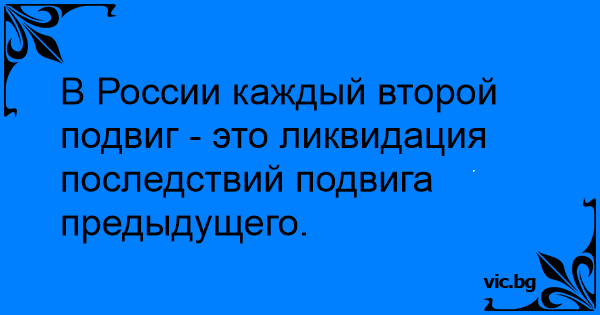 В России каждый второй подвиг - это ликвидация последствий подвига предыдущего.