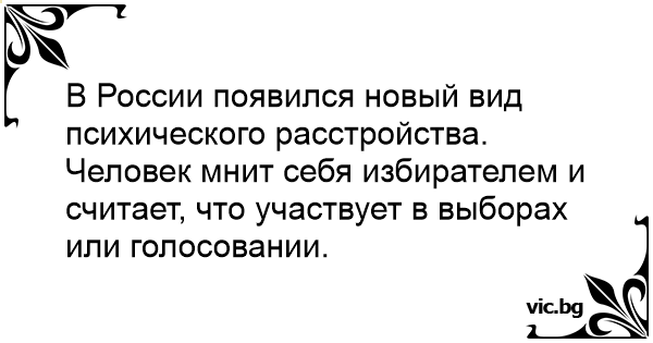 В России появился новый вид психического расстройства. Человек мнит себя избирателем и считает, что участвует в выборах или голосовании.