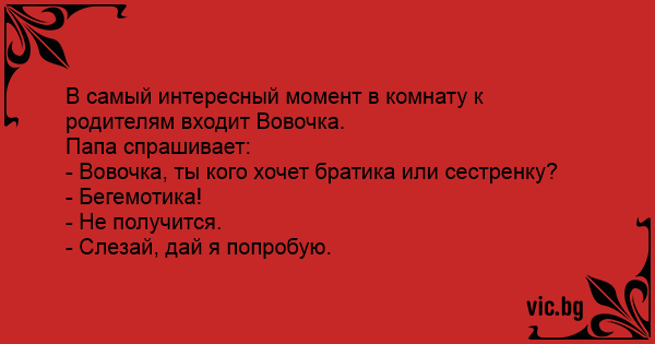 В самый интересный момент в комнату к родителям входит Вовочка.