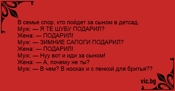 Муж: — В чем? В носках и с пенкой для бритья??