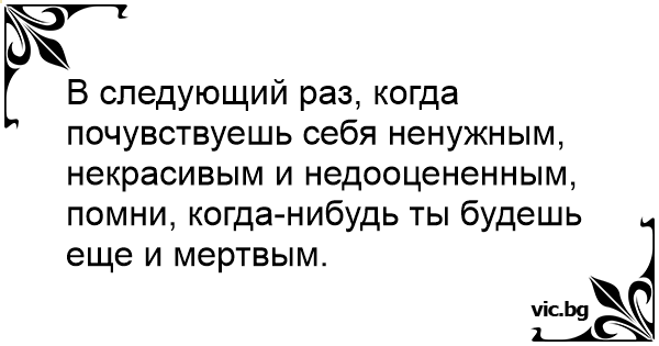 В следующий раз, когда почувствуешь себя ненужным, некрасивым и недооцененным, помни, когда-нибудь ты будешь еще и мертвым.