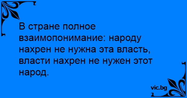В стране полное взаимопонимание: народу нахрен не нужна эта власть, власти нахрен не нужен этот народ.