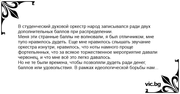 В студенческий духовой оркестр народ записывался ради двух дополнительных баллов при распределении.