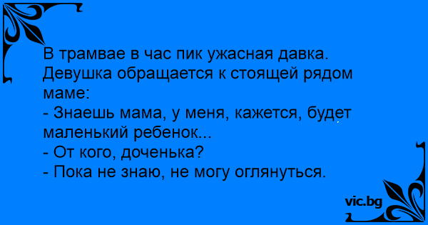 В трамвае в час пик ужасная давка. Девушка обращается к стоящей рядом маме:
