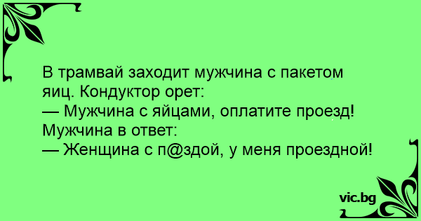 В трамвай заходит мужчина с пакетом яиц. Кондуктор орет: