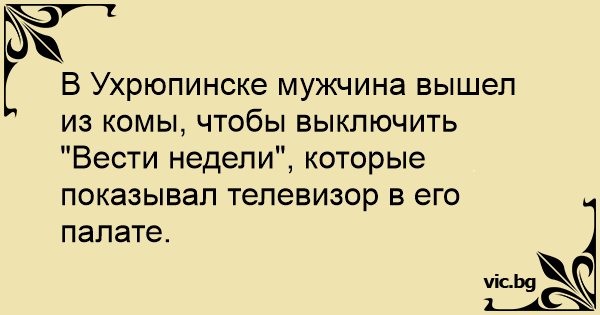 В Ухрюпинске мужчина вышел из комы, чтобы выключить "Вести недели", которые показывал телевизор в его палате.