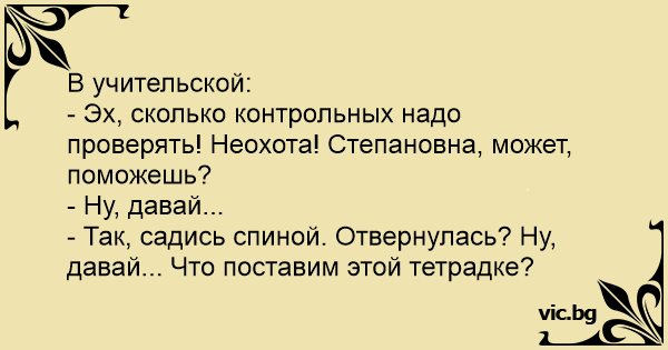 - Эх, сколько контрольных надо проверять! Неохота! Степановна, может, поможешь?