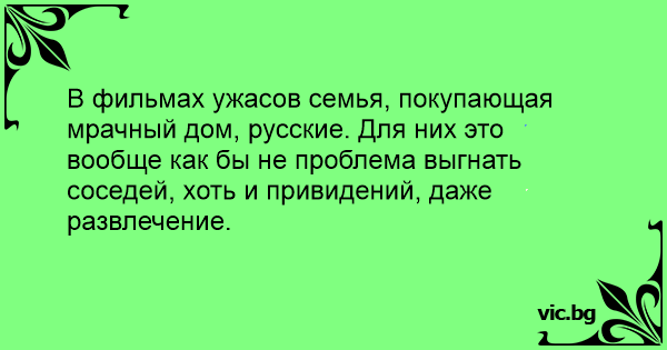 В фильмах ужасов семья, покупающая мрачный дом, русские. Для них это вообще как бы не проблема выгнать соседей, хоть и привидений, даже развлечение.