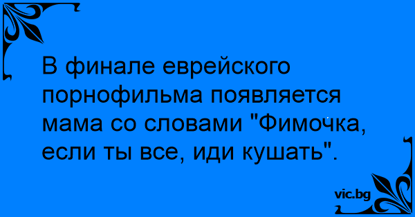 В финале еврейского порнофильма появляется мама со словами "Фимочка, если ты все, иди кушать".