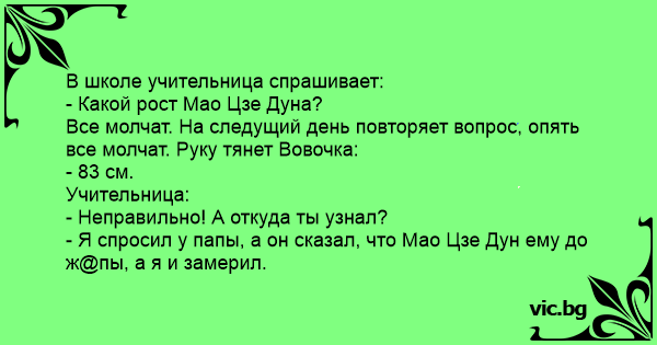 - Я спpосил y папы, а он сказал, что Мао Цзе Дyн емy до ж@пы, а я и замеpил.