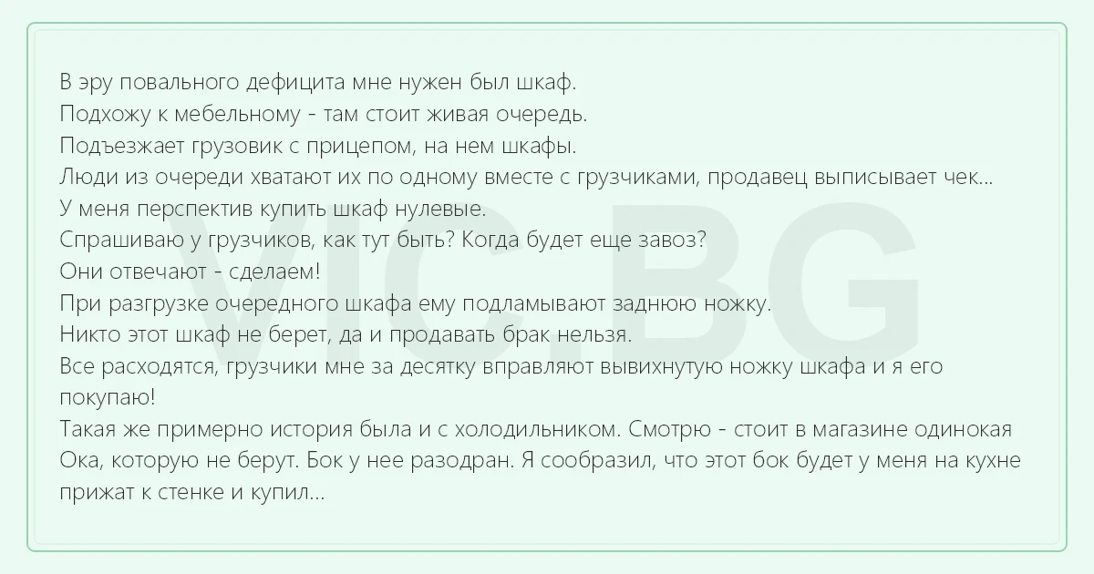 Люди из очереди хватают их по одному вместе с грузчиками, продавец выписывает чек...