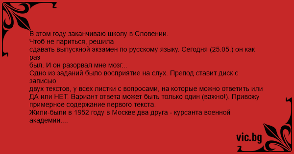 сдавать выпускной экзамен по русскому языку. Сегодня (25.05.) он как раз