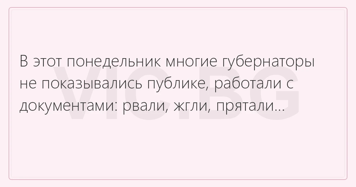В этот понедельник многие губернаторы не показывались публике, работали с документами: рвали, жгли, прятали...