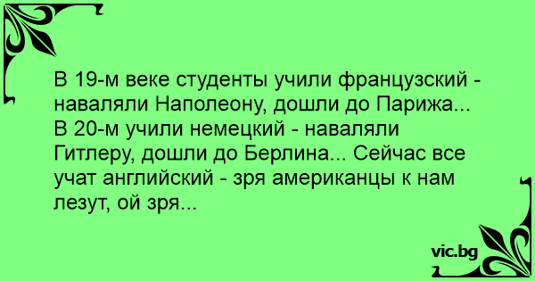 В 19-м веке студенты учили французский - наваляли Наполеону, дошли до Парижа...