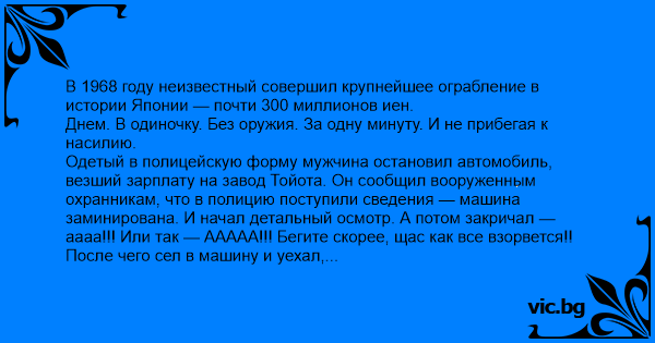 В 1968 году неизвестный совершил крупнейшее ограбление в истории Японии — почти 300 миллионов иен.