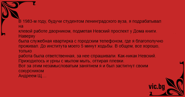 В 1983-м году, будучи студентом ленинградского вуза, я подрабатывал на