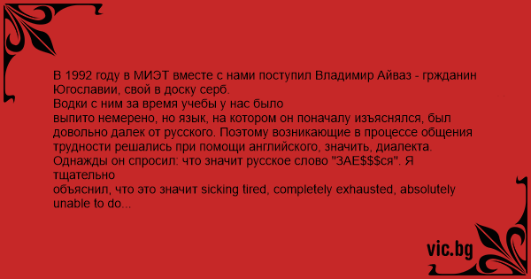Однажды он спросил: что значит русское слово "ЗАЕ$$$ся". Я тщательно