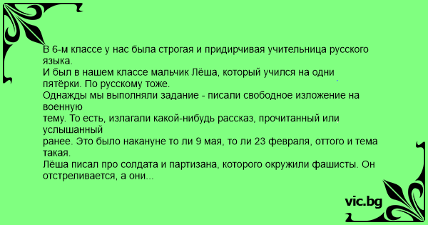 Однажды мы выполняли задание - писали свободное изложение на военную