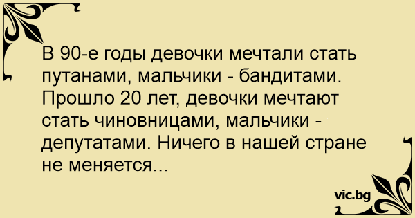 Прошло 20 лет, девочки мечтают стать чиновницами, мальчики - депутатами. Ничего в нашей стране не меняется...