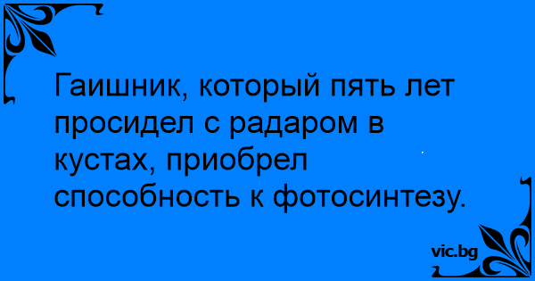 Гаишник, который пять лет просидел с радаром в кустах, приобрел способность к фотосинтезу.