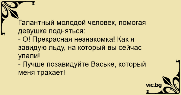 - О! Прекрасная незнакомка! Как я завидую льду, на который вы сейчас упали!
