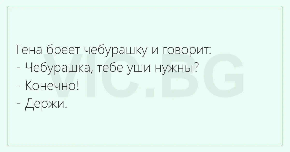 Гена бреет чебурашку и говорит: - Чебурашка, тебе уши нужны? - Конечно! - Держи.