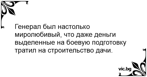 Генерал был настолько миролюбивый, что даже деньги выделенные на боевую подготовку тратил на строительство дачи.