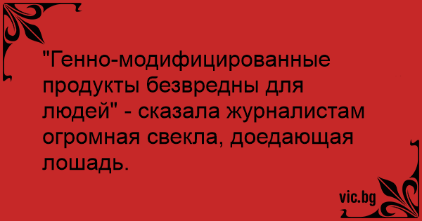 "Генно-модифицированные продукты безвредны для людей" - сказала журналистам огромная свекла, доедающая лошадь.