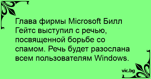 Глава фирмы Microsoft Билл Гейтс выступил с речью, посвященной борьбе со спамом. Речь будет разослана всем пользователям Windows.