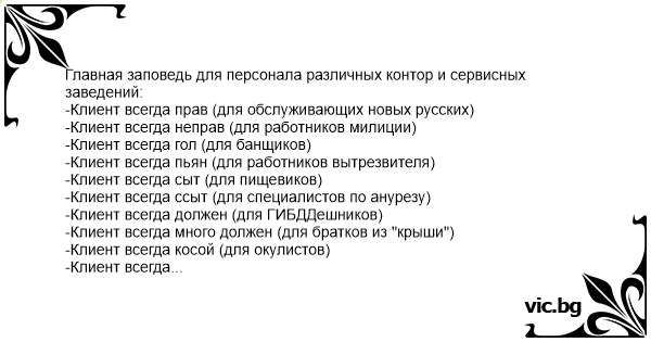 Главная заповедь для персонала различных контор и сервисных заведений: