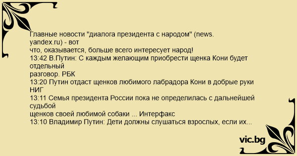 12:56 У собаки Путина активные щенки. "Прямая линия" все более