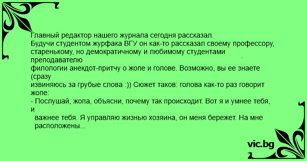 филологии анекдот-притчу о жопе и голове. Возможно, вы ее знаете (сразу