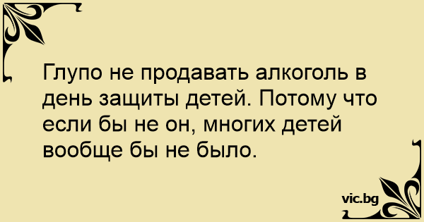 Глупо не продавать алкоголь в день защиты детей. Потому что если бы не он, многих детей вообще бы не было.