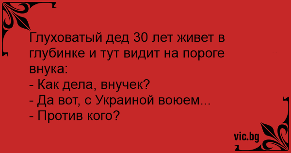 Глуховатый дед 30 лет живет...