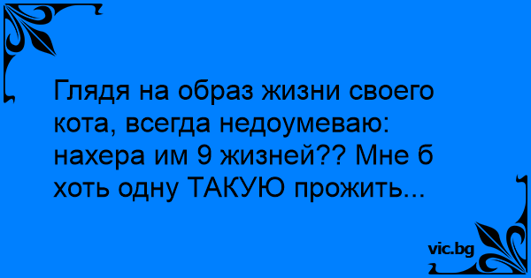 Глядя на образ жизни своего кота, всегда недоумеваю: нахера им 9 жизней?? Мне б хоть одну ТАКУЮ прожить...
