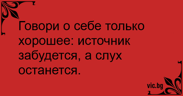 Говори о себе только хорошее: источник забудется, а слух останется.