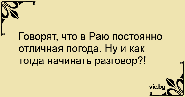 Казват, че в Рая времето непрекъснато е хубаво. Как ли завързват разговор там?!
